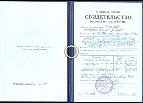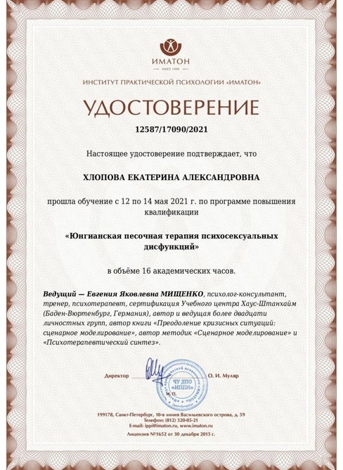 2019 г - Психологическое консультирование и психокоррекция в сексологии (218 часов) Институт повышения квалификации ОППЛ