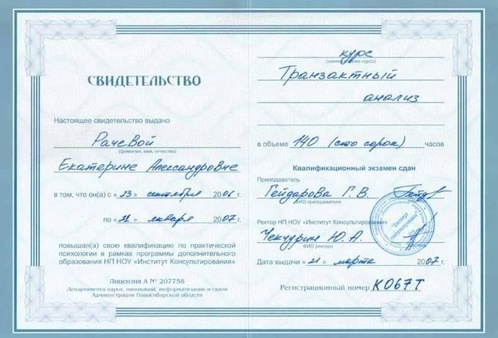 2007 г - Курс "Транзактный анализ" (140 часов)